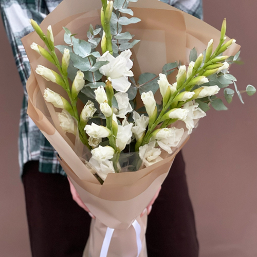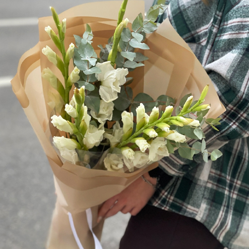 Заказанный букет вы можете забрать у нас в магазине по адресу: Москва: ул. Большая Семеновская 11с3 - с 7:00 до 24:00!